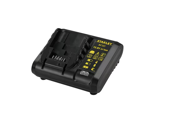 Ricarica veloce e affidabile delle batterie Stanley 10.8 V Li‑Ion grazie alla corrente di uscita adeguata e alla stabilizzazione elettronica.