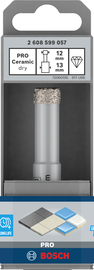 La corona diamantata Bosch 2608599057 è l’accessorio ideale per eseguire fori puliti e precisi su materiali duri come piastrelle in ceramica, gres porcellanato, granito e vetro.