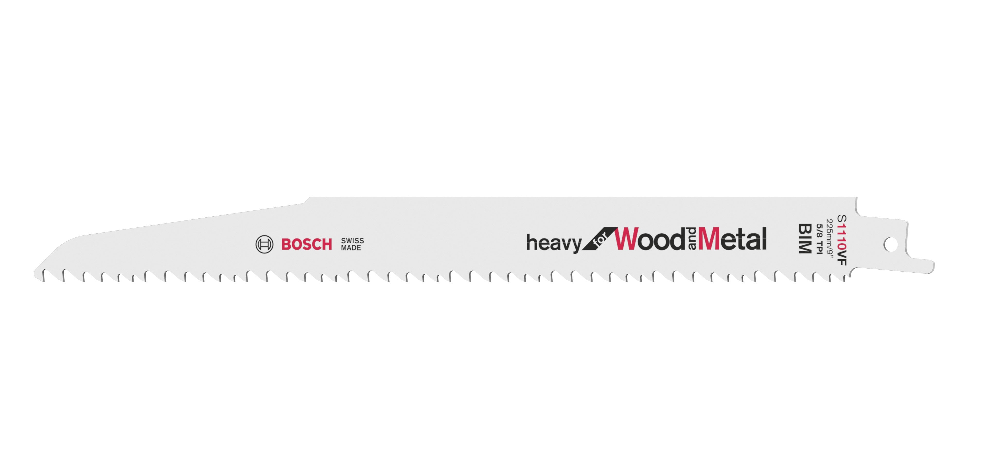 Utilizzabile con seghe universali con codolo universale da 1/2". La lama per sega universale S 1110 VF Heavy for Wood and Metal consente tagli veloci in legno e metallo. Grazie all'ampio corpo rastremato (22 mm) e al materiale extra-spesso (1,6 mm) la lama favorisce la stabilità estrema necessaria per applicazioni di demolizione e consente tagli diritti controllati senza flessioni. Il design vario-tooth e ampi incavi rimuovono il materiale con efficienza, favorendo un avanzamento veloce del lavoro. Lama realizzata in BIM (bimetallica), con listello in acciaio temprato HSS (acciaio super rapido) saldato a una lama elastica in HCS (acciaio al carbonio), ideale per tagli di componenti in acciaio di resistenza normale inseriti nel legno. La lama ha una lunghezza standard di 225 mm per una capacità di taglio massima di 175 mm.