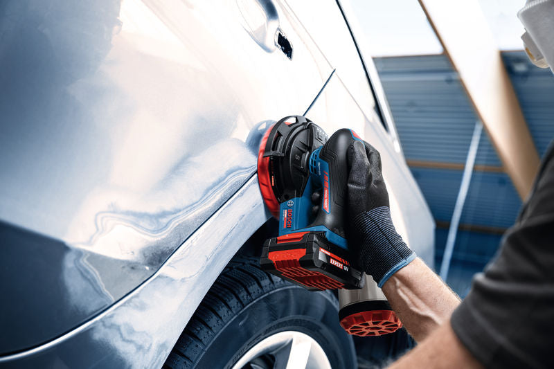 La Bosch EXPERT EXEX18V‑150‑5 è la levigatrice rotoorbitale a batteria ideale per professionisti e operatori che necessitano di prestazioni superiori nella preparazione e rifinitura delle superfici. Grazie alla orbita di 5 mm in combinazione con un platorello di 150 mm, questa levigatrice garantisce fino al 50 % di asportazione del materiale in più rispetto a modelli tradizionali come la GEX 18V‑150‑3, migliorando efficienza e produttività.